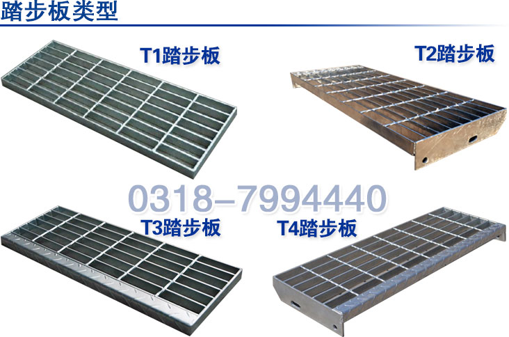 踏步板又叫樓梯踏步板、鋼梯踏步板。其中有四種類型:T1踏步板、T2踏步板、T3踏步板、T4踏步板。踏步板與橋梁的連接采用焊接或螺栓固定,梯段踏板和梯段平臺具有良好的防滑性能。