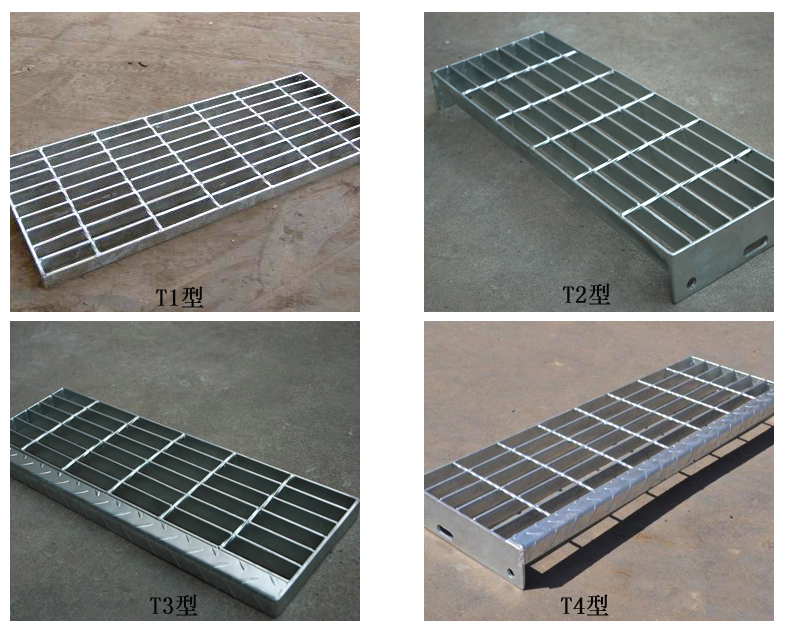 (3)T3踏步:由承載扁鋼和橫桿按照特定的比例焊接而成的,帶有前防護板,防止滑倒。